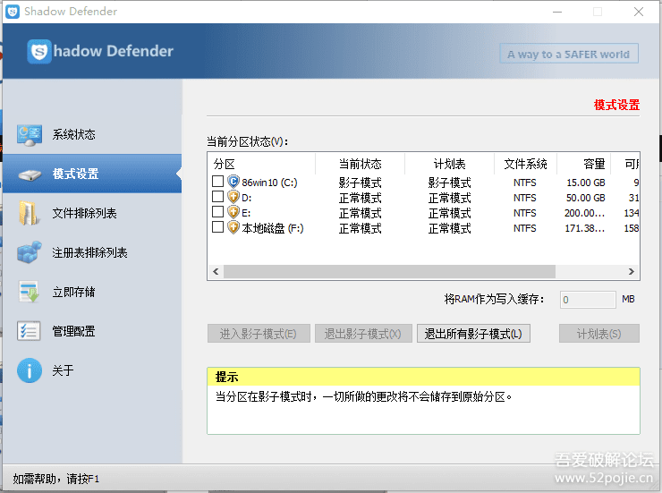 Shadow Defender可以在称为“影子模式”的虚拟环境中运行系统。“影子模式”将每个系统更改重定向到虚拟环境,而不更改您的实际环境。