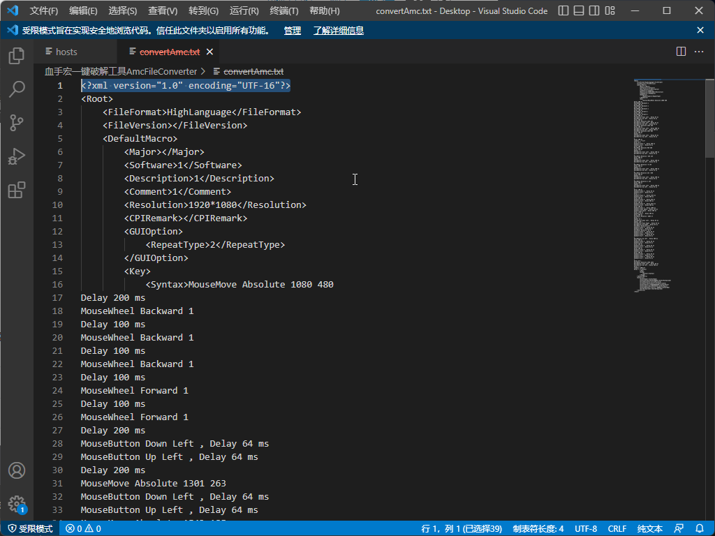 (血手宏源代码只包含 < ROOT></ROOT > 内的参数,如果破解出来有其它参数,删除后再进行导入)