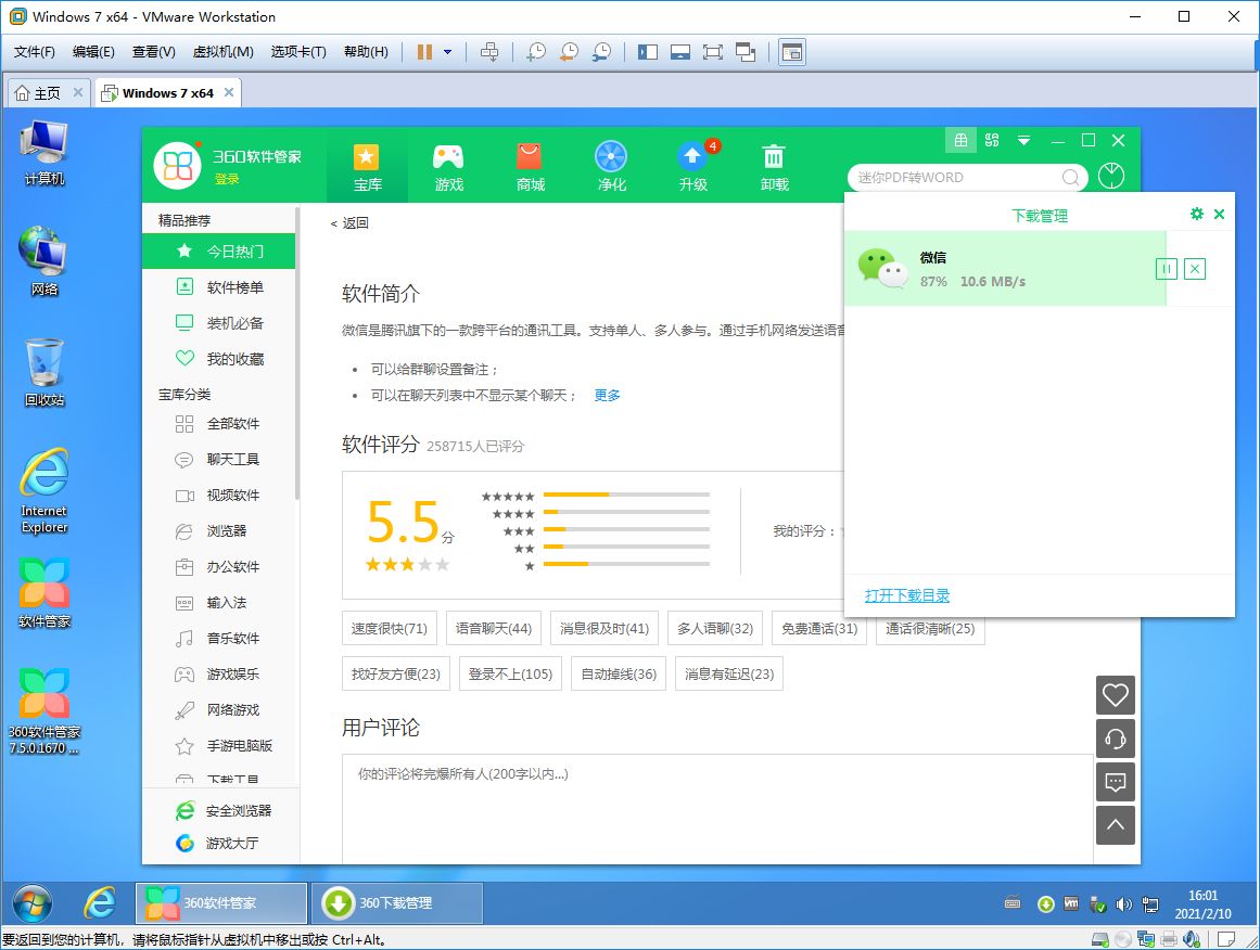 2、此独立版仅在Win7 64位系统且并未安装任何杀毒软件的环境下测试正常,如果提示“检测到文件缺失,360软件管家运行不正常…”,无需反馈!请自行查找问题原因!