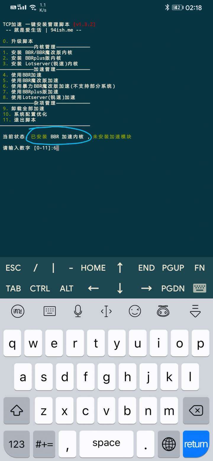 第三部:输入数字1点击回车键安装BBR加速内核☆如果VPS重启☆请连接服务器后执行第二步☆安装完成BBR加速内核[如图一所示]☆看到加速内核已经安装完成之后☆输入数字6☆启动BBR暴力加速模式☆如果系统不支持可以启动魔改版☆[如图二所示]启动完成之后退出连接再次重新连接上服务器输入加速脚本查看内核和加速模块都已启动☆